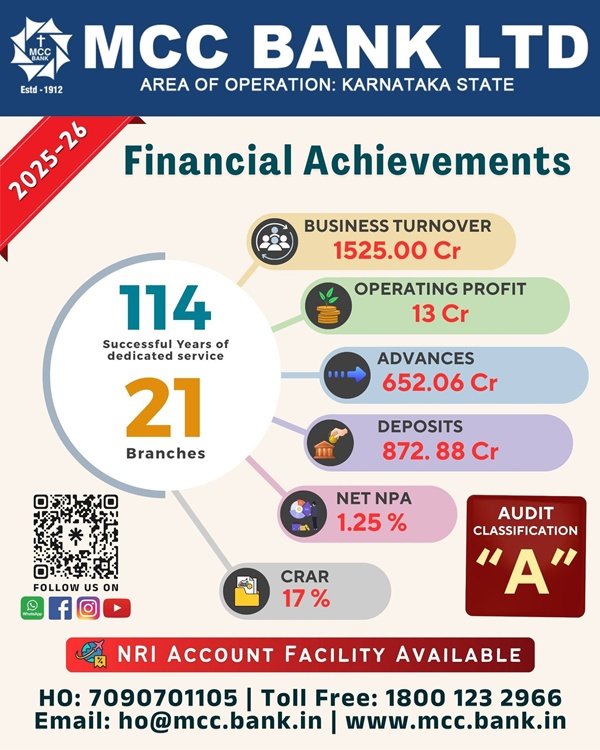 “2026-27 ವ್ಯಾ ಆರ್ಥಿಕ್ ವರ್ಸಾಂತ್ 4 ನವೆ ಶಾಖೆ ಉಘಡ್ಚೆಂ ಯೋಜನ್ ಆಸುನ್, ಆರ್ಥಿಕ್ ವರ್ಸಾಚ್ಯಾ ಅಕೇರಿಕ್ ಶಾಖ್ಯಾಂಚೊಂ ಸಂಖೊ ಪಂಚ್ವೀಸಾಕ್ ಪಾವ್ತೊಲೊ. 22 ವೊ ಶಾಖೊ ದೇರಳಕಟ್ಟೆ ಆನಿ 23 ವೊ ಶಾಖೊ ಕಟಪಾಡಿ ಹಾಂಗಾಸರ್ ಉಘಡುಂಕ್ ಎದೊಳ್ಚ್ ಅನುಮತಿ ಲಾಭ್ಲ್ಯಾ ಆಸುನ್, ಜೂನ್ ಆನಿ ಆಗೋಸ್ತ್ ಮಯ್ನ್ಯಾಂತ್ ಶಾಖೆ ಕಾಮ್ ಕರುಂಕ್ ಲಾಗ್ತಾಲೆ.” ಮ್ಹಣ್ ತಾಣೆ ಮ್ಹಳೆಂ.