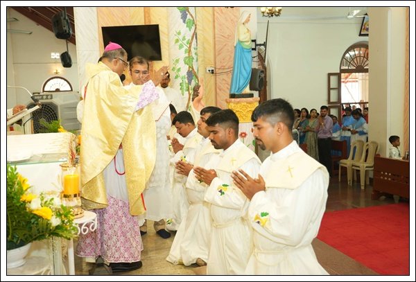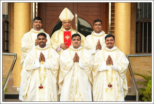 ಶಿರ್ತಾಡಿಚ್ಯಾ ಚಾರ್ಲ್ಸ್ ಸಾಂತುಮಾಯೋರ್ ಆನಿ ಆಂಜೆಲಿನ್ ಕ್ರಾಸ್ತಾ ಹಾಂಚೊ ಪೂತ್ ಅವಿಲ್ ಸಾಂತುಮಾಯೋರ್, ನೈನಾಡ್ಚ್ಯಾ ಡೆನಿಸ್ ಆನಿ ಎಲಿಜಾ ರೊಡ್ರಿಗಸ್ ಹಾಂಚೊ ಪೂತ್ ಡೆನ್ಜಿಲ್ ರೊಡ್ರಿಗಸ್, ಬೇಳಾಚ್ಯಾ ಜೊನ್ ಆನಿ ಐರಿನ್ ಡಿ ಸೊಜಾ ಹಾಂಚೊ ಪೂತ್ ಜೀವನ್ ಡಿಸೋಜಾ, ಕುಲ್ಶೇಕರ್ಚ್ಯಾ ವಿಕ್ಟರ್ ಜೊನ್ ಆನಿ ಪ್ರಮೀಳಾ ಮೊಂತೇರೊ ಹಾಂಚೊ ಪೂತ್ ಜೋಯಲ್ ಮೊಂತೇರೊ ಆನಿ ಮಡಂತ್ಯಾರ್ ಲೊರೆನ್ಸ್ ಆನಿ ರೀಟಾ ಡಿ ಸೊಜಾ ಹಾಂಚೊ ಪೂತ್ ಲೊಯ್ಡ್ ರೋಹನ್ ಡಿಸೋಜಾ – ಪಾಂಚ್ ದಿಯಾಕೊನ್, 2026 ಏಪ್ರಿಲ್ 16 ವೆರ್ ಕೊರ್ಡೆಲ್ ಪವಿತ್ರ್ ಖುರ್ಸಾಕ್ ಸಮರ್ಪಿಲ್ಲ್ಯಾ ದೇವಳಾಂತ್ ಮಂಗ್ಳುರ್ಚೊ ಗೊವ್ಳಿ ಅ| ಮಾ| ದೊ| ಪೀಟರ್ ಪಾವ್ಲ್ ಸಲ್ಡಾನ್ಹಾ ಹಾಂಚೆ ಥಾವ್ನ್ ಯಾಜಕೀ ದೀಕ್ಷಾ ಘೆವುನ್, ಮಂಗ್ಳುರ್ ದಿಯೆಸೆಜಿಕ್ ಪಾಂಚ್ ನವೆ ಯಾಜಕ್ ಜಾವ್ನ್ ಭರ್ತಿ ಜಾಲೆ.