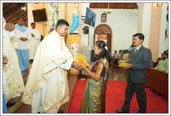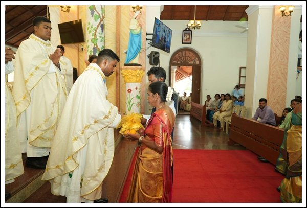 ಮಿಸಾಚ್ಯಾ ಪವಿತ್ ಬಲಿದಾನಾ ಉಪ್ರಾಂತ್ ಚಲ್ಲೆಲ್ಯಾ ಸತ್ಕಾರ್ ಕಾರ್ಯಾಂತ್ ಮಾ| ಬಾ| ಫ್ಲೇವಿಯನ್ ಲೋಬೋ ಹಾಣಿ ನವ್ಯಾ ಯಾಜಕಾಂಚಿಂ ಆನಿ ತಾಂಚ್ಯಾ ಕುಟ್ಮಾಚಿ ಒಳಕ್ ಕರುನ್ ದಿಲಿ. ಗೊವ್ಳಿ ಬಾಪಾನ್ ನವ್ಯಾ ಯಾಜಕಾಂಕ್ ಅಭಿನಂದನ್ ಪಾಟವ್ನ್ ಬರೆಂ ಮಾಗ್ಲೆಂ ಆನಿ ತಾಂಚ್ಯಾ ಕುಟ್ಮಾಕ್ ಫುಲಾಂ ತುರೊ ದೀವ್ನ್ ಅಬಾರ್ ಮಾಂದುನ್ ಮಾನ್ ಕೆಲೊ.